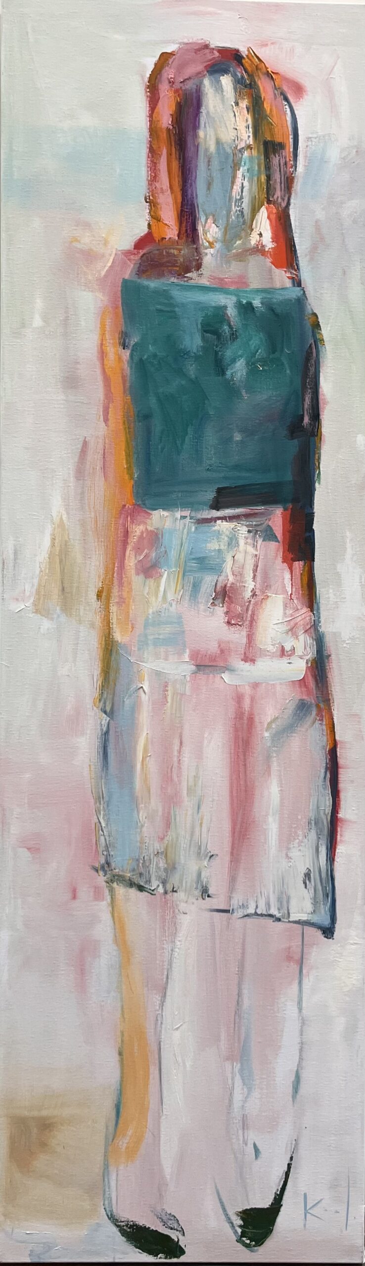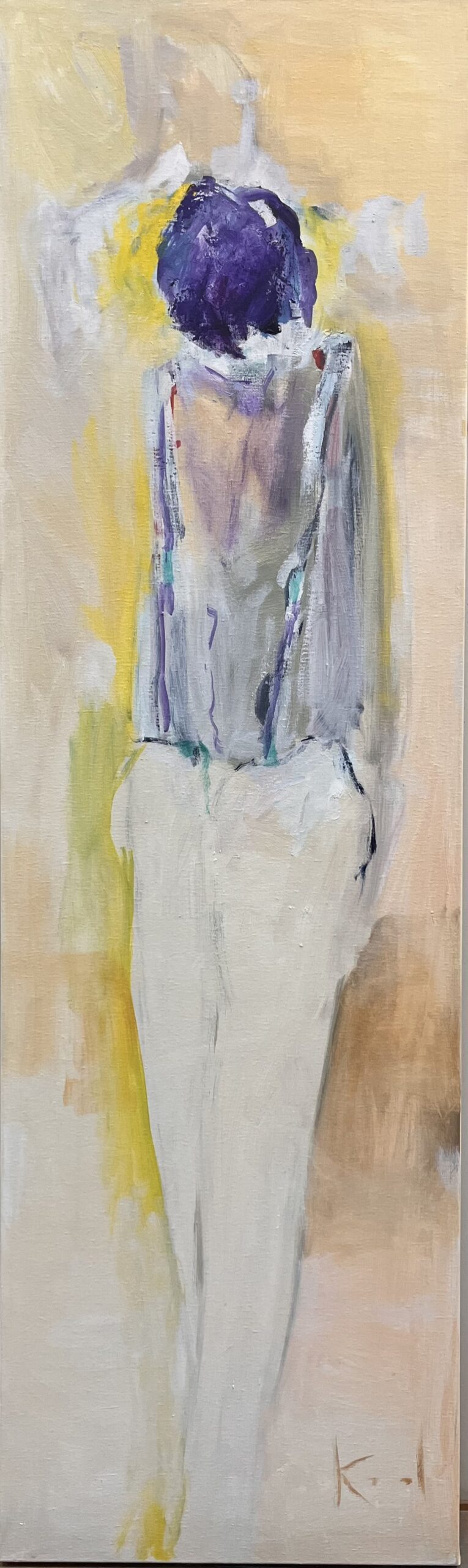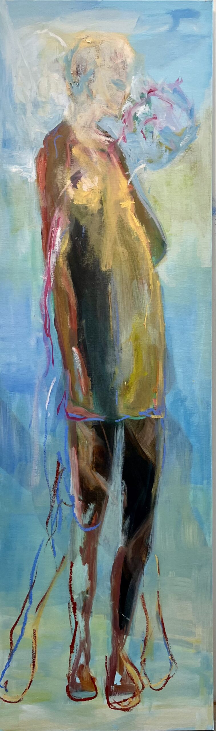 In 2025 begon ik met een pallet nieuwe doeken waaronder doeken van 60 x 200 cm. Hun formaat inspireerde me tot een bijzondere reeks, waarin de mensfiguren als vanzelf hun weg vonden in de verf.