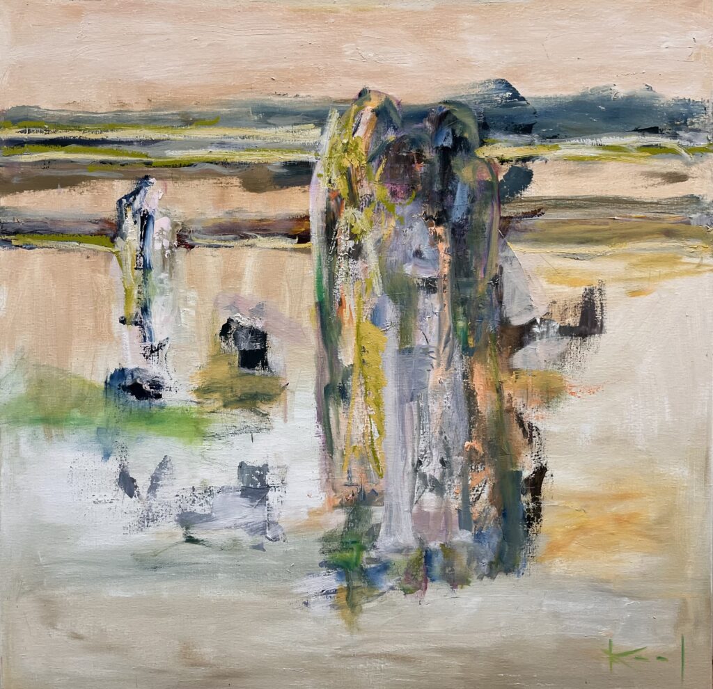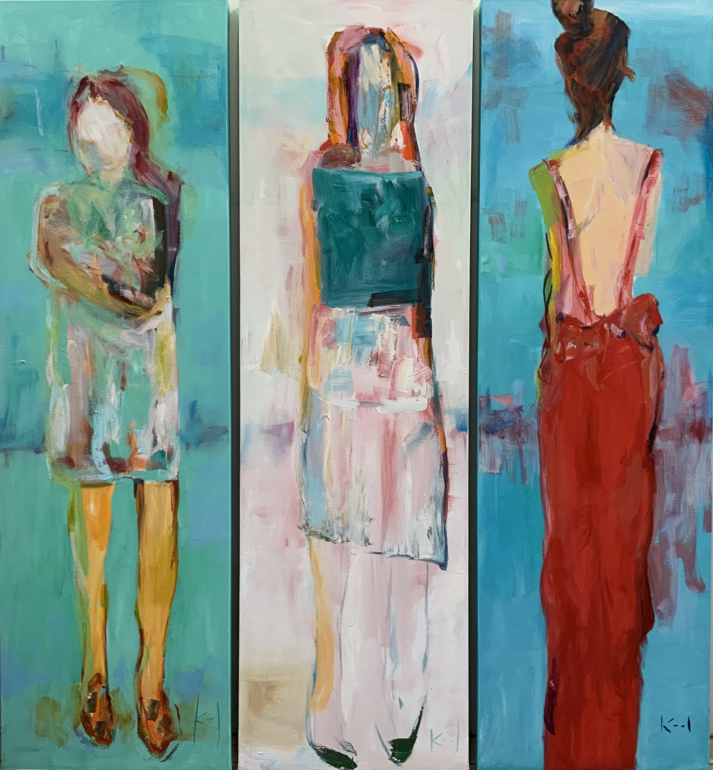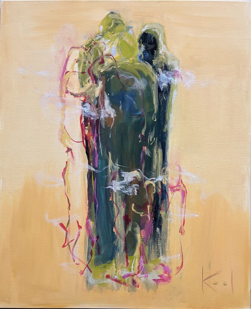 In 2025 begon ik met een pallet nieuwe doeken waaronder doeken van 60 x 200 cm. Hun formaat inspireerde me tot een bijzondere reeks, waarin de mensfiguren als vanzelf hun weg vonden in de verf.